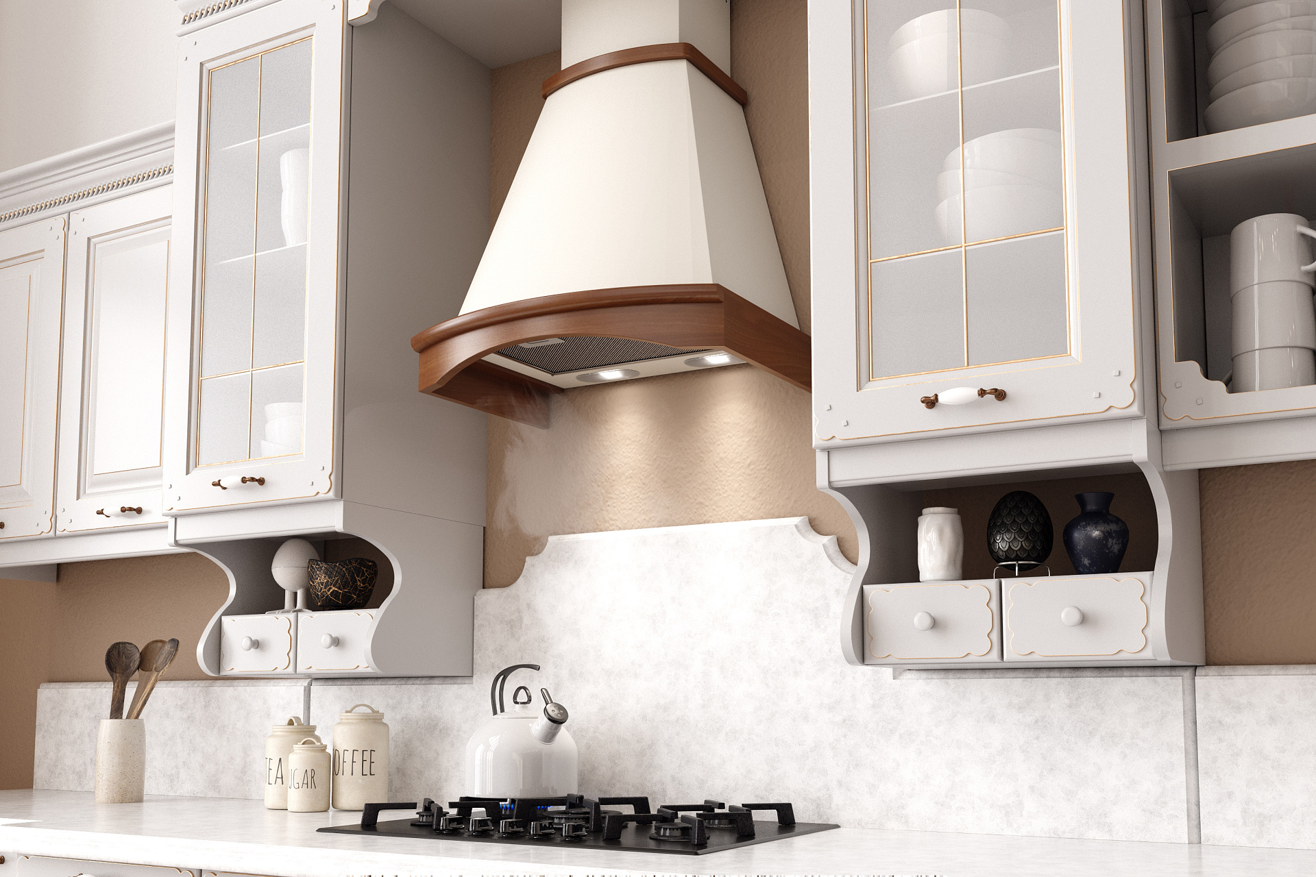 Для классических вытяжек используются материалы дуба или бука - древесина, которая устойчива к воздействию влаги, эластична и отличается высокими декоративными свойствами.