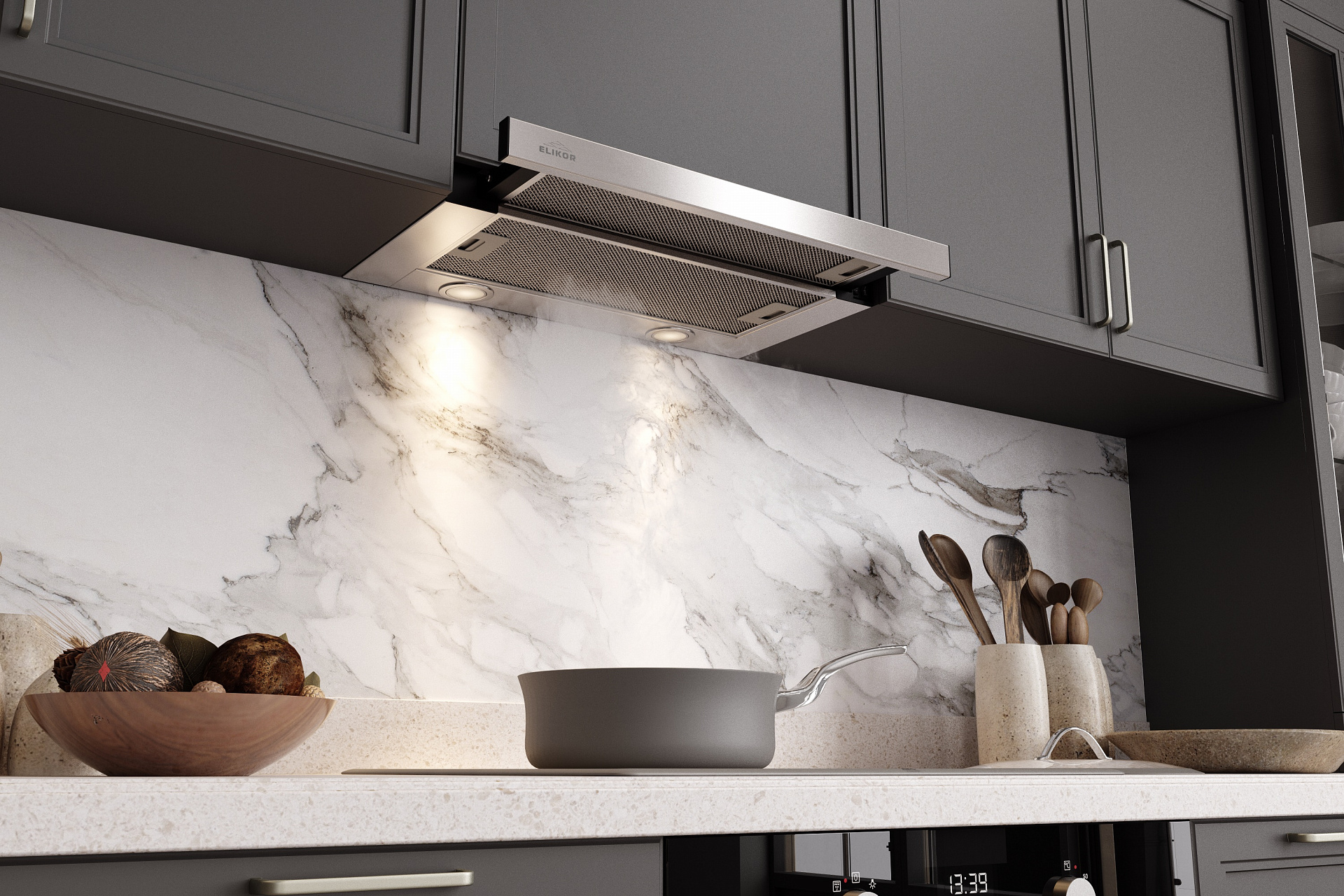 КУХОННАЯ ВЫТЯЖКА ИНТЕГРА С РЕЙЛИНГОМ